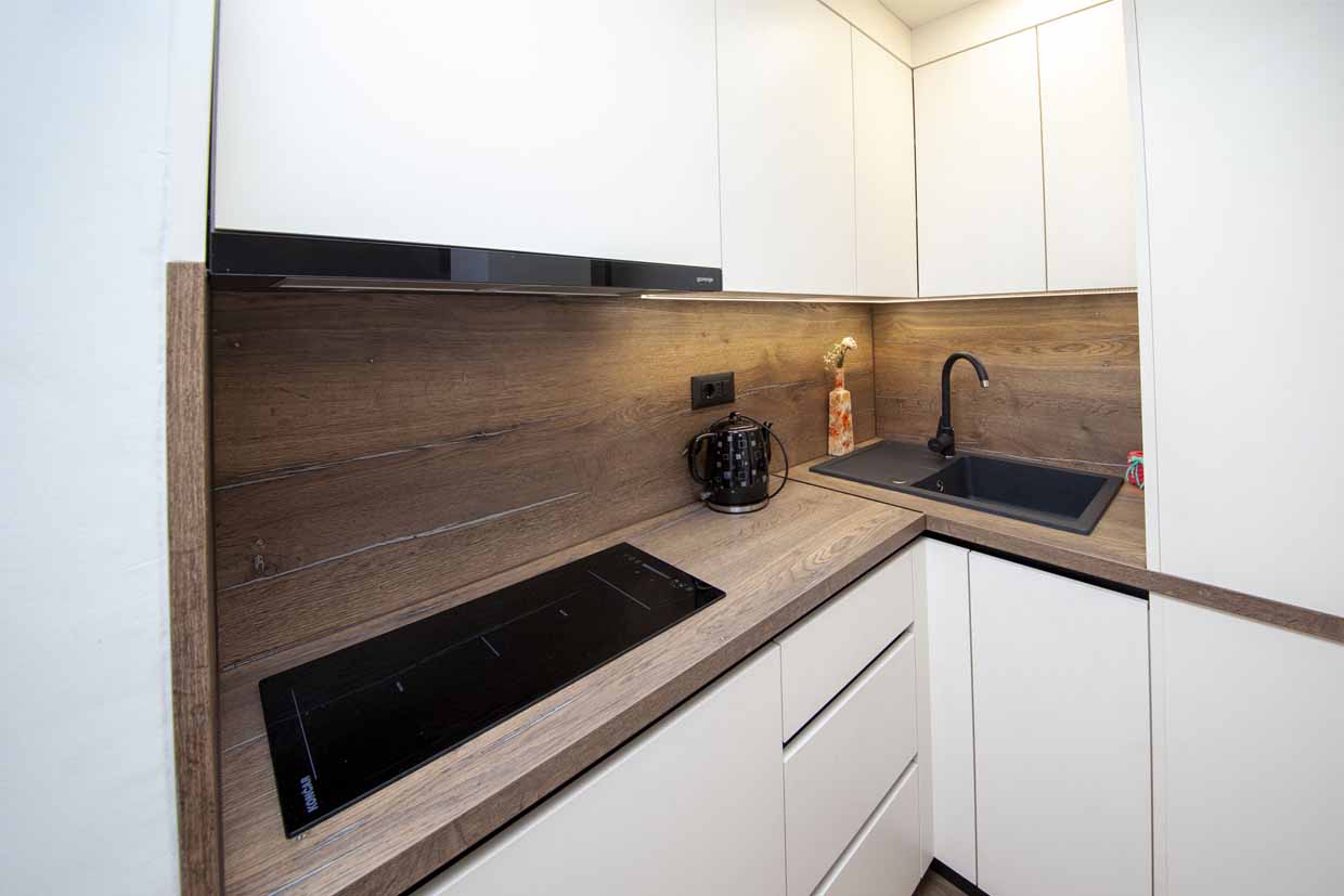 - KUHINJA: Otvorena kuhinja u sklopu sobe, štednjak, aparat za kavu / čaj, hladnjak, pribor za kuhanje, jelo i piće.